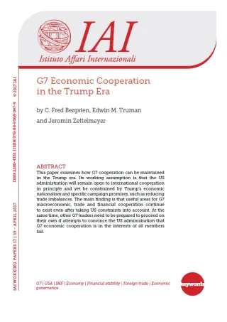 This paper examines how G7 cooperation can be maintained in the Trump era. Its working assumption is that the US administration will remain open to international cooperation in principle and yet be constrained by Trump’s economic nationalism and specific campaign promises, such as reducing trade imbalances. The main finding is that useful areas for G7 macroeconomic, trade and financial cooperation continue to exist even after taking US constraints into account. At the same time, other G7 leaders need to be prepared to proceed on their own if attempts to convince the US administration that G7 economic cooperation is in the interests of all members fail.