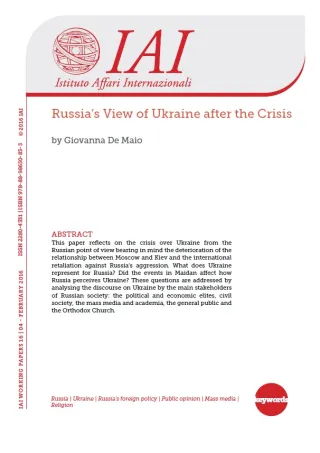 This paper reflects on the crisis over Ukraine from the Russian point of view bearing in mind the deterioration of the relationship between Moscow and Kiev and the international retaliation against Russia’s aggression. What does Ukraine represent for Russia? Did the events in Maidan affect how Russia perceives Ukraine? These questions are addressed by analysing the discourse on Ukraine by the main stakeholders of Russian society: the political and economic elites, civil society, the mass media and academia, the general public and the Orthodox Church.