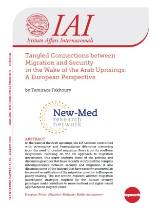 Paper produced within the framework of the New-Med Research Network, March 2016. See also: "Securitising Migration: The European Union in the Context of the Post-2011 Arab Upheavals", in The International Spectator, Vol. 51, No. 4 (December 2016), p. 67-79.