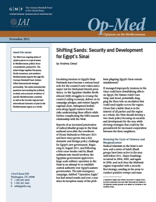 If managed improperly, tensions in the Sinai could have destabilizing effects on Egypt, the Hamas-ruled Gaza Strip, and Israel, potentially dragging the three into an escalation that could send ripples across the region. Given that a stable Sinai is in the interest of all parties and the region as a whole, the West should develop a two-track policy focusing on security and development for the area while devising strategies that could lay the groundwork for increased cooperation between the three neighbors.
