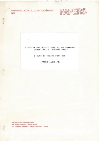 Paper by Saccomandi also published in English: “Prospects for the common agriculture policy: some hypotheses of reform”, in The International Spectator, Vol. 19, No. 3-4 (July-December 1984), p. 149-154; paper by Giolitti also published in English: “Italy and the Community after thirty years of experience”, in The International Spectator, Vol. 19, No. 2 (April-June 1984), p. 75-82.