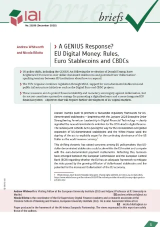 Taken together, these three tracks represent a coherent – yet reactive – strategy by EU authorities to guard against the perceived risks of the dollarisation of the EU economy, particularly through digital payment rails and monetary instruments. This strategy has become more explicit – and perhaps more urgent – following the introduction of the GENIUS Act, both because of regulatory competition and the White House’s explicit ambition to ensure Dollar dominance in international monetary affairs.