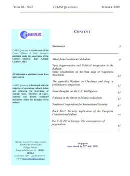 Roma, Centro militare di studi strategici (CeMiSS), May 2005, 53 p.