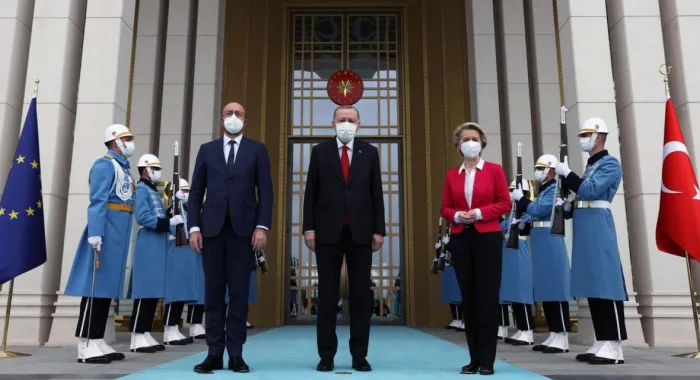 Nel corso della visita diplomatica del presidente del Consiglio europeo Charles Michel e della presidente della Commissione europea Ursula von der Leyen presso il presidente turco Recep Tayyip…