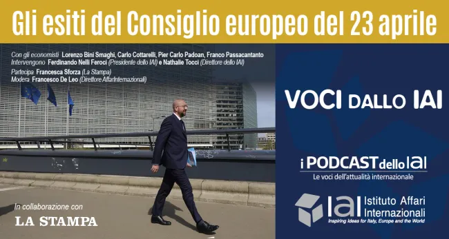 Venerdì 24 aprile 2020, la rivista AffarInternazionali ha organizzato un web meeting dal titolo "GLI ESITI DEL CONSIGLIO EUROPEO DEL 23 APRILE". Sono intervenuti al forum nell'ordine: Ferdinando Nelli Feroci(Presidente dell'Istituto Affari Internazionali), Lorenzo Bini Smaghi (Presidente di Societé Generale, già membro del comitato esecutivo della Banca centrale europea), Carlo Cottarelli (Direttore dell'Osservatorio sui Conti Pubblici dell'Università Cattolica del Sacro Cuore di Milano), Pier Carlo Padoan (Accademico, deputato, già Ministro dell’Economia e delle Finanze, Direttore esecutivo per l'Italia del Fondo Monetario Internazionale. Vice Presidente Istituto Affari Internazionali), Franco Passacantando(Insegna all'Università Luiss Guido Carli di Roma, già Direttore Esecutivo Banca Mondiale) e Nathalie Tocci(Direttore dello IAI).