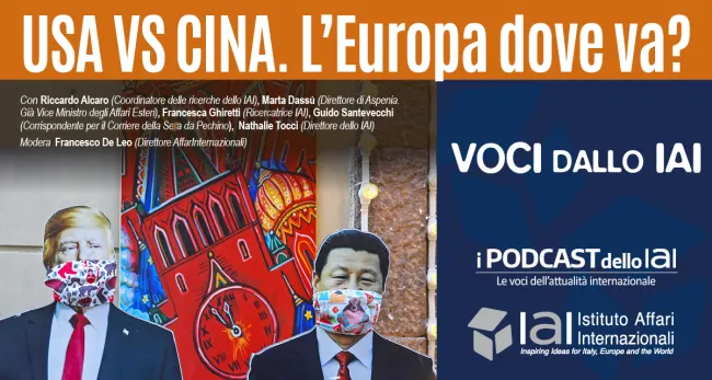 Venerdì 10 aprile 2020, la rivista AffarInternazionali ha organizzato un web meeting dal titolo "USA VS CINA. L'Europa dove va?". Sono intervenuti al forum nell’ordine: Nathalie Tocci (Direttore dello IAI), Guido Santevecchi (Corrispondente per il Corriere della Sera da Pechino), Riccardo Alcaro (Coordinatore delle ricerche dello IAI), Francesca Ghiretti (Ricercatrice dello IAI) e Marta Dassù (Direttore di Aspenia, già vice ministro degli Affari Esteri).