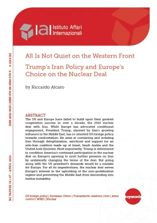 All Is Not Quiet on the Western Front. Trump's Iran Policy and Europe's Choice on the Nuclear Deal