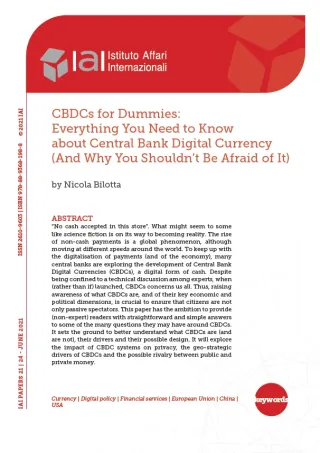 “In questo negozio non si accetta contante”. Un avvertimento che sembrerebbe arrivare dritto dritto da un racconto di fantascienza è sul punto di diventare realtà. La diffusione dei pagamenti senza contanti è un fenomeno globale, sebbene proceda con diverse velocità nei diversi paesi del mondo. Per stare al passo con la digitalizzazione dei pagamenti (e dell’economia), molte banche centrali stanno progettando l’emissione di Central Bank Digital Currency (Cbdc) ossia di forme di moneta digitale. Benché il tema attualmente sia confinato nelle discussioni tecniche tra esperti, una volta lanciate (sul “se” non sembrano esserci dubbi) le Cbdc riguarderanno tutti. Per questo, accrescere la consapevolezza di ciò che le Cbdc sono e delle loro principali dimensioni economiche e politiche è cruciale per assicurare che i cittadini non siano solo spettatori passivi. Questo studio ha l’ambizione di fornire ai lettori non esperti risposte semplici e dirette ad alcuni degli interrogativi che le Cbdc potrebbero suscitare. Dopo aver posto le basi per una migliore comprensione di ciò che le Cbdc sono (e non sono), dei loro elementi chiave e delle loro possibili realizzazioni progettuali, l’articolo esplorerà l’impatto dei sistemi di Cbdc sulla privacy, le questioni geostrategiche che ne derivano e la possibile rivalità tra moneta pubblica e privata.