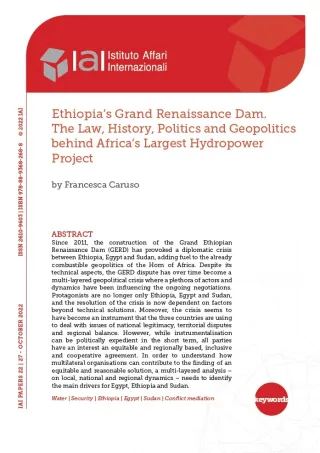 A partire dal 2011 la costruzione della Grand Ethiopian Renaissance Dam ha provocato una crisi diplomatica tra Etiopia, Egitto e Sudan, aggiungendo benzina alla già infiammabile geopolitica del Corno d’Africa. Nonostante i suoi aspetti tecnici, la controversia sulla diga è diventata nel tempo una crisi geopolitica a più livelli in cui una pletora di attori e di dinamiche ha influenzato i negoziati in corso. I protagonisti non sono più solo Etiopia, Egitto e Sudan, e la risoluzione della crisi dipende ormai da fattori che vanno al di là delle soluzioni tecniche. La crisi sembra inoltre essere diventata uno strumento con cui i tre Paesi stanno affrontando questioni di legittimità nazionale, contenziosi territoriali ed equilibri regionali. Tuttavia, mentre la strumentalizzazione può essere politicamente utile a breve termine, tutte le parti hanno interesse a un accordo equo e regionale, inclusivo e cooperativo. Per capire come le organizzazioni multilaterali possano contribuire alla ricerca di una soluzione equa e ragionevole, serve un’analisi a più livelli – sulle dinamiche locali, nazionali e regionali – che deve identificare i principali fattori che guidano Egitto, Etiopia e Sudan.