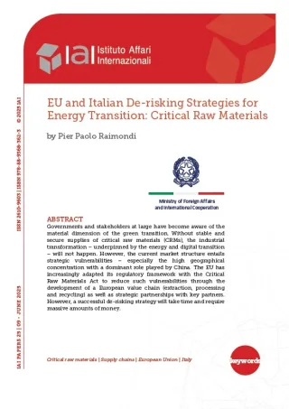 EU and Italian De-risking Strategies for Energy Transition: Critical Raw Materials