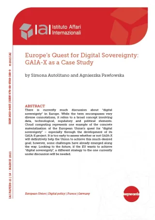 Oggi si discute molto di “sovranità digitale” in Europa. Sebbene il termine racchiuda connotazioni molto diverse, si riferisce a un concetto ampio che implica i dati e elementi tecnologici, normativi e politici. Il cloud computing rappresenta un esempio del concreto materializzarsi della ricerca di una “sovranità digitale” da parte dell’Unione europea, soprattutto attraverso lo sviluppo del suo progetto Gaia-X. È troppo presto per valutare se Gaia-X aiuterà davvero l’Unione a raggiungere tale obiettivo tanto agognato, ma lungo tale percorso sono già emersi alcuni problemi. Guardando al futuro, se l’Ue vuole raggiungere la “sovranità digitale”, sarà necessaria una strategia diversa da quella attualmente in discussione.