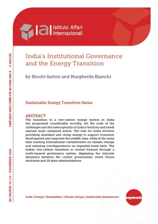 In India la transizione verso un sistema energetico a bassa intensità di carbonio ha registrato di recente notevoli progressi, ma la portata delle sfide e l’eterogeneità del territorio e dei bisogni dell’India giustificano un intervento più deciso. L’India ha il compito di fornire energia abbondante e a buon mercato per sostenere lo sviluppo economico e rafforzare la classe media e al tempo stesso deve ottemperare agli impegni internazionali in materia di cambiamenti climatici e ridurre la dipendenza eccessiva dai combustibili fossili importati. La transizione indiana è portata avanti attraverso un sistema di governance a più livelli, che rivela le complesse dinamiche tra il governo centrale, i sette territori dell’Unione e le 29 amministrazioni statali.