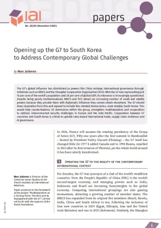 Studio prodotto nell’ambito del progetto “Multilateralism at a Turning Point: The ROK and its Engagement with the G7”.