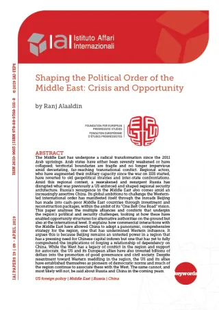 Shaping the Political Order of the Middle East: Crisis and Opportunity
