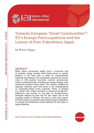 Il Giappone, che soffre notoriamente di una carenza strutturale di fonti energetiche primarie, è stato in grado di giungere a uno sviluppo industriale senza precedenti pur essendo soggetto a disastri naturali. Terremoto, tsunami e crisi nucleare del 2011 hanno spinto i successivi governi del Paese a rivedere completamente la strategia energetica e hanno portato a progressi sostanziali. Le politiche adottate dal 2011 dalle autorità giapponesi puntano alla realizzazione di reti elettriche basate sulle comunità che, se adottate su più ampia scala, possono contribuire a migliorare l’autosufficienza energetica e la sicurezza. La questione appare ancora più urgente alla luce delle strategie di decarbonizzazione adottate sia dall’Ue che dal Giappone, nonché del conflitto in corso in Ucraina. Perciò è auspicabile una maggiore comunicazione e un maggior coordinamento tra l’Ue e il Giappone sulle questioni energetiche e di urbanizzazione.