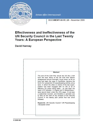 Effectiveness and Ineffectiveness of the UN Security Council in the Last Twenty Years: A European Perspective