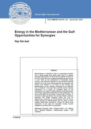 Energy in the Mediterranean and the Gulf. Opportunities for Synergies