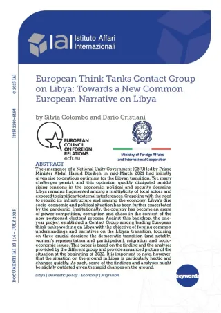 European Think Tanks Contact Group on Libya: Towards a New Common European Narrative on Libya