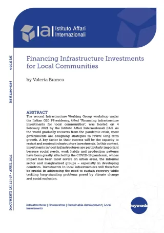 Rapporto del webinar “Financing infrastructure investments for local communities”, organizzato dallo IAI il 4 febbraio 2021.