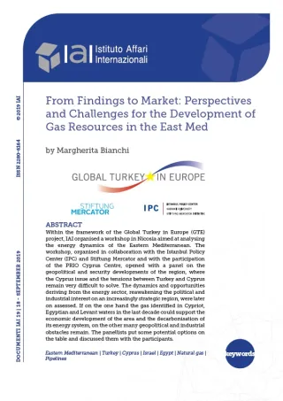 Rapporto del seminario “From Findings to Market - Perspectives and Challenges for the Development of Gas Resources in the East Med”, organizzato a Nicosia il 1 luglio 2019 dall’Istituto Affari Internazionali (IAI) con Istanbul Policy Center (IPC) e Stiftung Mercator nell’ambito del progetto Global Turkey in Europe.