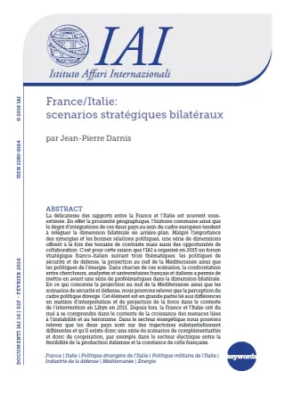 Rapport des trois séminaires organisés en 2015 par l’Istituto Affari Internazionali (IAI) avec la collaboration de l’Institut Français Italia dans le cadre du projet “Forum stratégique France-Italie”. Également publié en italien: Documenti IAI 16|02 (Francia/Italia: scenari strategici bilaterali).