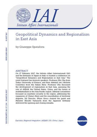 Rapporto della conferenza “Geopolitical Dynamics and Regionalism in East Asia” organizzata a Roma il 27 febbraio 2017 dall’Istituto Affari Internazionali (IAI) in collaborazione con l’Ambasciata del Giappone in Italia.