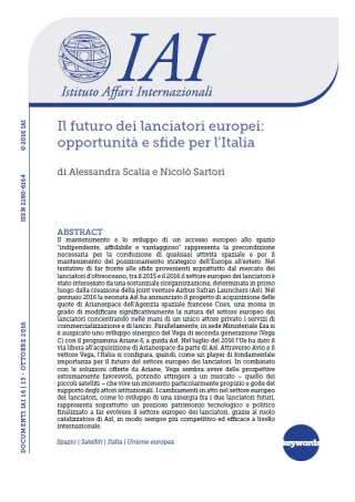 Il mantenimento e lo sviluppo di un accesso europeo allo spazio “indipendente, affidabile e vantaggioso” rappresenta la precondizione necessaria per la conduzione di qualsiasi attività spaziale e per il mantenimento del posizionamento strategico dell’Europa all’estero. Nel tentativo di far fronte alle sfide provenienti soprattutto dal mercato dei lanciatori d’oltreoceano, tra il 2015 e il 2016 il settore europeo dei lanciatori è stato interessato da una sostanziale riorganizzazione, determinata in primo luogo dalla creazione della joint venture Airbus Safran Launchers (Asl). Nel gennaio 2016 la neonata Asl ha annunciato il progetto di acquisizione delle quote di Arianespace dell’Agenzia spaziale francese Cnes, una mossa in grado di modificare significativamente la natura del settore europeo dei lanciatori concentrando nelle mani di un unico attore privato i servizi di commercializzazione e di lancio. Parallelamente, in sede Ministeriale Esa si è auspicato uno sviluppo sinergico del Vega di seconda generazione (Vega C) con il programma Ariane 6, a guida Asl. Nel luglio del 2016 l’Ue ha dato il via libera all’acquisizione di Arianespace da parte di Asl. Attraverso Avio e il vettore Vega, l’Italia si configura, quindi, come un player di fondamentale importanza per il futuro del settore europeo dei lanciatori. In combinato con le soluzioni offerte da Ariane, Vega sembra avere delle prospettive estremamente favorevoli, potendo attingere a un mercato – quello dei piccoli satelliti – che vive un momento particolarmente propizio e gode del supporto degli attori istituzionali. I cambiamenti in atto nel settore europeo dei lanciatori, come lo sviluppo di una sinergia fra i due lanciatori futuri, rappresenta soprattutto un prezioso patrimonio tecnologico e politico finalizzato a far evolvere il settore europeo dei lanciatori, grazie al ruolo catalizzatore di Asl, in modo sempre più competitivo ed efficace a livello internazionale.