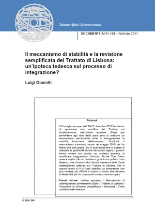 Il meccanismo di stabilità e la revisione semplificata del Trattato di Lisbona: un'ipoteca tedesca sul processo di integrazione?