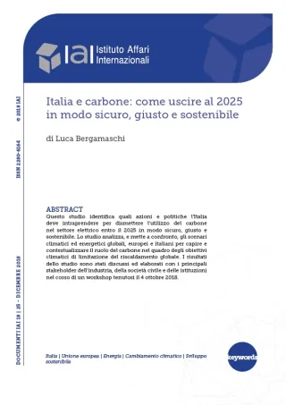 Studio realizzato nell’ambito del progetto “Il phase-out del carbone nell’area euromediterranea alla luce del caso italiano”, promosso dall’Istituto Affari Internazionali (IAI) in collaborazione con la European Climate Foundation.
