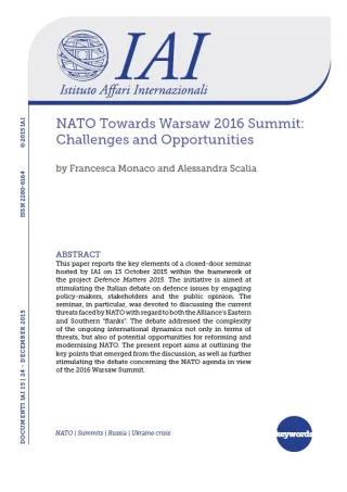 Rapporto del seminario “NATO Path from Wales to Warsaw Summit” organizzato a Roma il 13 ottobre 2015 dall'Istituto Affari Internazionali (IAI) nell'ambito del progetto Defence Matters.
