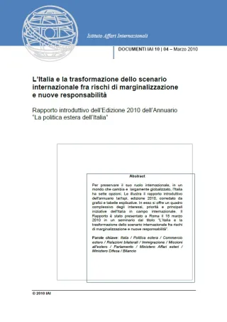 Rapporto introduttivo dell'edizione 2010 dell'annuario "La politica estera dell’Italia". Presentato a Roma il 18 marzo 2010 in un seminario dal titolo “L’Italia e la trasformazione dello scenario internazionale fra rischi di marginalizzazione e nuove responsabilità”.