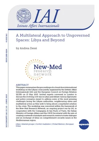 Rapporto del seminario internazionale "A Multilateral Approach to Ungoverned Spaces: Libya and Beyond", organizzato a Londra il 13 maggio 2015 dall'European Council on Foreign Relations (ECFR) e dall'Istituto Affari Internazionali (IAI) nell'ambito della rete di ricerca New-Med.