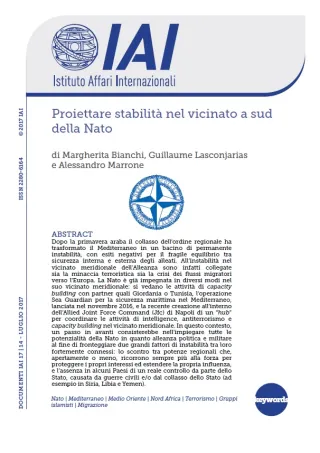 Traduzione in italiano di “Projecting Stability in NATO’s Southern Neighbourhood”, pubblicato dal NATO Defense College nella collana NDC Conference Reports (n. 3/2017, luglio 2017). La pubblicazione nasce dal dibattito che si è svolto durante la conferenza internazionale “La Nato e le crisi a sud dell’Europa: Proiettare stabilità nel vicinato meridionale della NATO”, Roma, 14 marzo 2017.