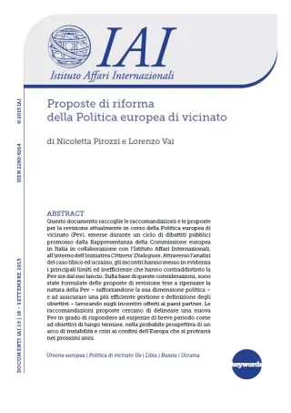 Questo documento raccoglie le raccomandazioni e le proposte per la revisione attualmente in corso della Politica europea di vicinato (Pev), emerse durante un ciclo di dibattiti pubblici promosso dalla Rappresentanza della Commissione europea in Italia in collaborazione con l’Istituto Affari Internazionali, all’interno dell’iniziativa Citizens’ Dialogues. Attraverso l’analisi del caso libico ed ucraino, gli incontri hanno messo in evidenza i principali limiti ed inefficienze che hanno contraddistinto la Pev sin dal suo lancio. Sulla base di queste considerazioni, sono state formulate delle proposte di revisione tese a ripensare la natura della Pev – rafforzandone la sua dimensione politica – e ad assicurare una più efficiente gestione e definizione degli obiettivi – lavorando sugli incentivi offerti ai paesi partner. Le raccomandazioni proposte cercano di delineare una nuova Pev in grado di rispondere ad esigenze di breve periodo come ad obiettivi di lungo termine, nella probabile prospettiva di un arco di instabilità e crisi ai confini dell’Europa che si protrarrà nei prossimi anni.