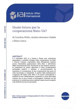 Rapporto della conferenza “Cooperazione Nato-Ue: quale futuro?” organizzata a Roma il 6 dicembre 2017 dalla Delegazione italiana presso l’Assemblea parlamentare della Nato in collaborazione con l’Istituto Affari Internazionali (IAI).