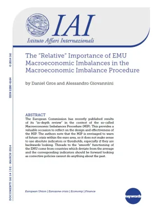 La Commissione europea ha pubblicato di recente i risultati del suo "esame approfondito" nell'ambito della procedura sulla prevenzione e la correzione degli squilibri macroeconomici. Ciò fornisce un'occasione preziosa per riflettere sul disegno e l'efficacia della procedura. Gli autori notano che compito della procedura è prevedere una futura crisi nella zona euro, quindi non ha senso utilizzare indicatori o soglie di allerta di tipo assoluto, soprattutto se applicati a dati relativi al passato. Le discussioni sul "regolare" funzionamento dell'Uem vengono da paesi che si discostano dalla media e i corrispondenti indicatori dovrebbero essere applicati su dati a venire, poiché le politiche correttive nulla possono sul passato.