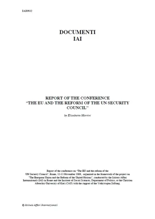 Rapporto del primo incontro del Gruppo di lavoro I "The EU and the reform of the UN Security Council", organizzato a Roma il 12-13 novembre 2009 dall'Istituto Affari Internazionali (IAI) nell'ambito del progetto di ricerca "The European Union and the Reform of the United Nations" (The EU as a global actor in the UN reform process).