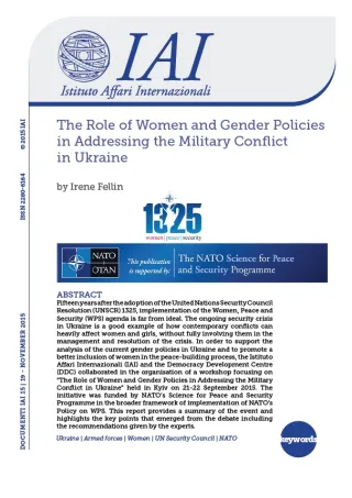 Rapporto del seminario di ricerca avanzata della Nato “The Role of Women and Gender Policies in Addressing the Military Conflict in Ukraine. Implementing UN Security Council Resolution 1325 and Related Resolutions”, Kiev, 21-22 settembre 2015.