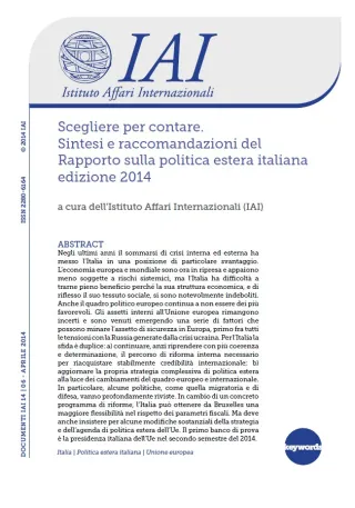Sintesi e raccomandazioni del Rapporto sulla politica estera italiana edizione 2014, presentato dall'Istituto Affari Internazionali (IAI) alla tavola rotonda su "Italia, Europa, Mondo: scegliere per contare", Roma, 16 aprile 2014.