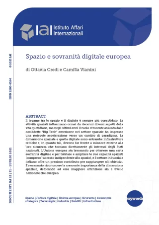 Il legame tra lo spazio e il digitale è sempre più consolidato. Le attività spaziali influenzano ormai da decenni diversi aspetti della vita quotidiana, ma negli ultimi anni il ruolo crescente assunto dalle cosiddette “Big Tech” americane nel settore spaziale ha impresso una notevole accelerazione verso un cambio di paradigma. La dimensione spaziale e quella digitale sono entrambe infrastrutture critiche e, in quanto tali, devono far fronte a minacce esterne alla loro sicurezza che toccano direttamente gli interessi degli Stati nazionali. L’Unione europea sta lavorando per ottenere una certa sovranità digitale e per tutelare e ampliare le sue capacità spaziali (compreso l’accesso indipendente allo spazio), e il settore industriale italiano offre un prezioso contributo per raggiungere tali obiettivi. È necessario riconoscere la crescente importanza della dimensione spaziale, dedicando ad essa maggiore attenzione sia a livello nazionale che europeo.
