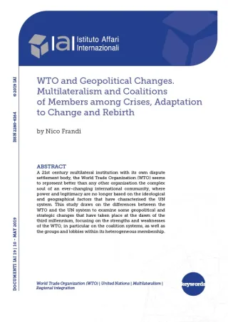 WTO and Geopolitical Changes. Multilateralism and Coalitions of Members among Crises, Adaptation to Change and Rebirth