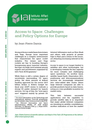Access to Space: Challenges and Policy Options for Europe