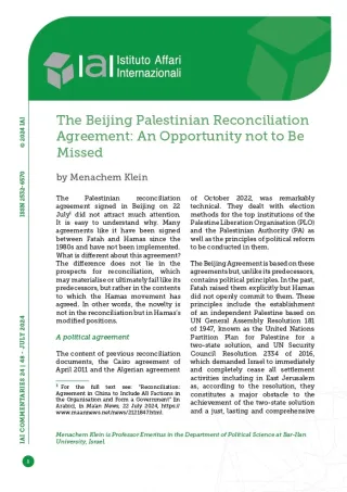 The Beijing Palestinian Reconciliation Agreement: An Opportunity not to Be Missed
