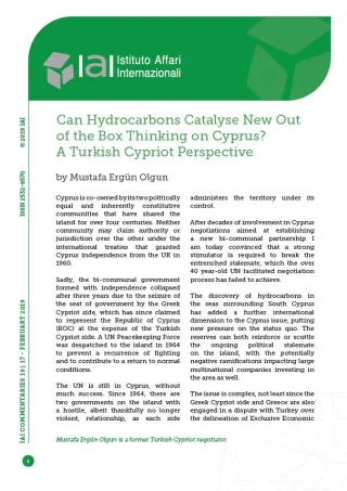 Can Hydrocarbons Catalyse New Out of the Box Thinking on Cyprus? A Turkish Cypriot Perspective