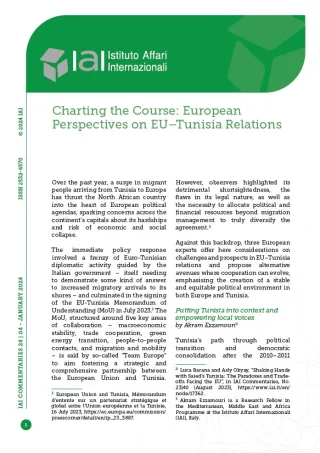 Against this backdrop, three European experts offer here considerations on challenges and prospects in EU–Tunisia relations and propose alternative avenues where cooperation can evolve, emphasising the creation of a stable and equitable political environment in both Europe and Tunisia.