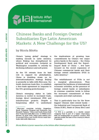 Chinese Banks and Foreign Owned Subsidiaries Eye Latin American Markets: A New Challenge for the US?
