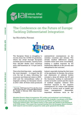 [8] Nicoletta Pirozzi, Pier Domenico Tortola and Lorenzo Vai, Differentiated Integration: A Way Forward for Europe, Rome, IAI, 16 March 2017, https://www.iai.it/en/node/7440.