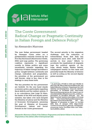 The Conte Government: Radical Change or Pragmatic Continuity in Italian Foreign and Defence Policy?