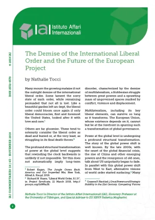 The Demise of the International Liberal Order and the Future of the European Project