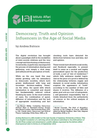 The digital revolution has brought about a paradigm shift in the modalities of state-society relations and the very concept and functioning of democracy. Social media, in particular, has impacted the process of information sharing and gathering, now simply a click away, and influenced the perception of truth.